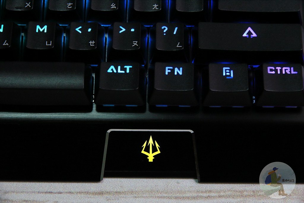 鍵帽採用二色成形ABS,每顆按鍵顏色模式有18種燈光效果可以在官方網站下載程式設定,也可以依照說明書中快捷鍵上做調整。
