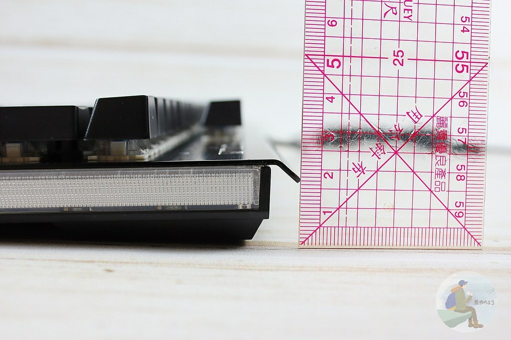 背後四大防滑墊放桌上真的很穩定,雖然機械式鍵盤整體厚度比較高,如果覺得不夠高也是有提供腳架可以調高,以正常打字來說這樣的傾斜度會比較符合。