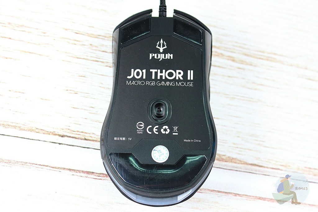 滑鼠後側有J01 THOR II的三叉戟標誌,RGB彩燈可以在這邊亮出喔。