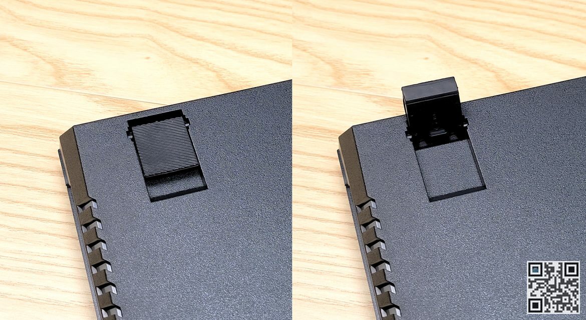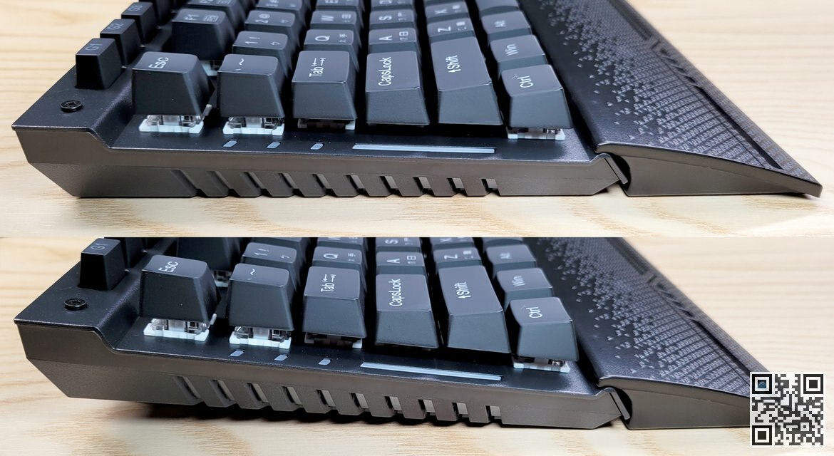 鍵盤立腳為 大約提升8度的角度,讓整體鍵盤提升到到一個打字舒適的位置,當然也可以依造個人習慣配置來改變。
