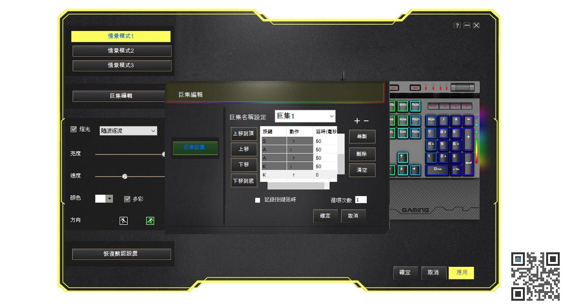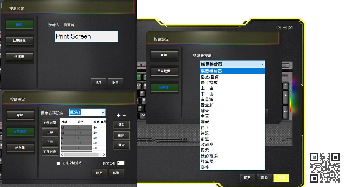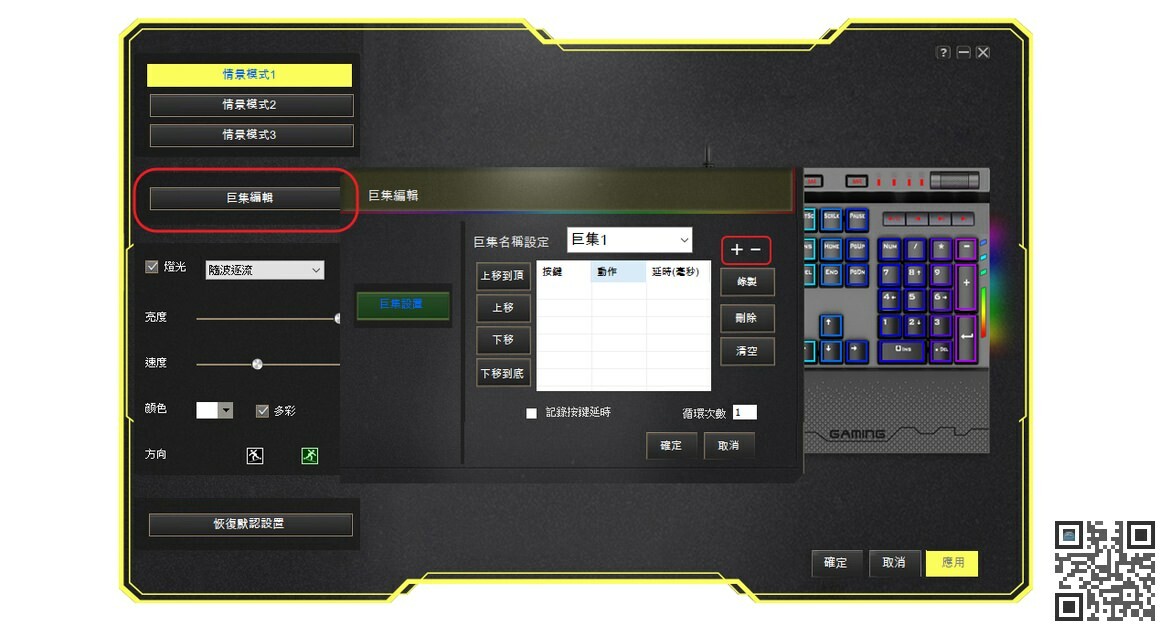 軟體左側還有一個巨集編輯,點擊後會出現巨集編輯視窗。按下【+】之後可以新增, 【-】 可以刪除