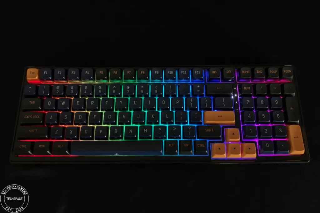 其他包含像是 Gateron 熱插拔軸體、自帶的軟體驅動等功能,也都有額外點綴加強的效果,敲擊體驗感受不錯,由於是紅軸線性軸的關係,加上內部多方面的降噪穩定效果,聲響輕、手感回饋佳,即便作為第一把機械式鍵盤入手也不過份。