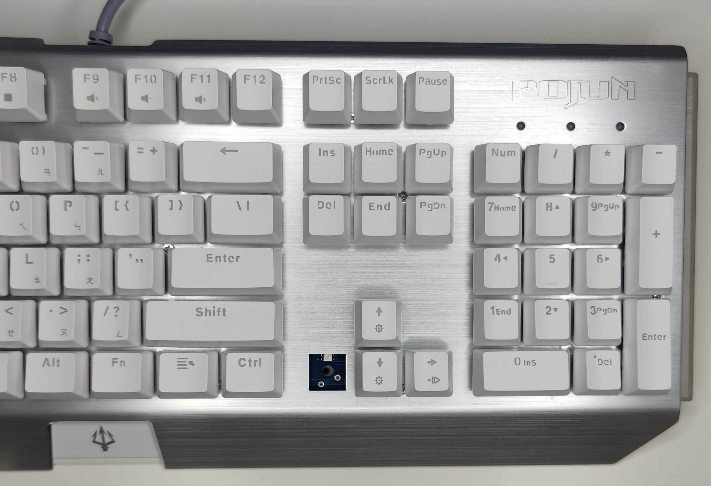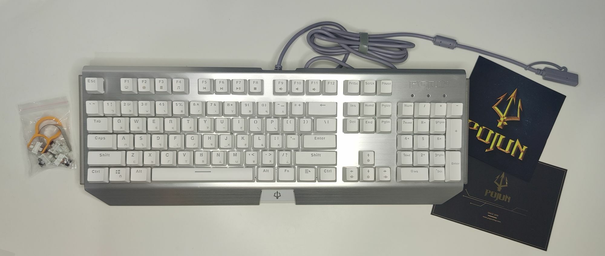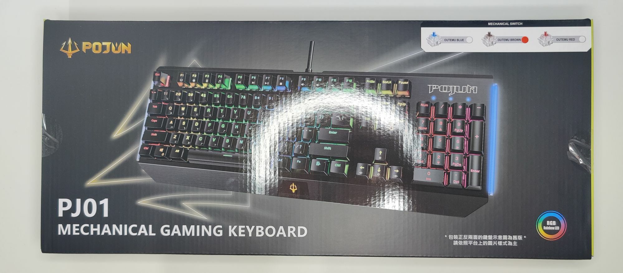 這次開箱的是POJUN PJ01 白色茶軸版本(圖片那個白色圈是燈光的反光),這款機械鍵盤的性價比可以說是我看過有史以來最高的一款,為什麼我這樣說呢?