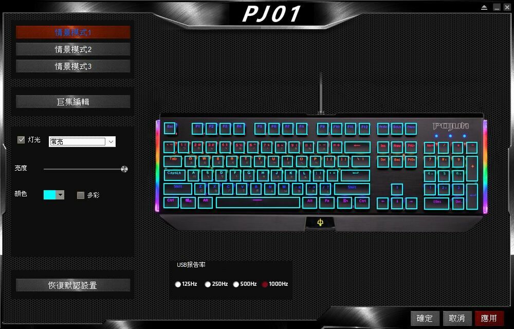 載好安裝完就會到這個介面,左邊可以自訂情景模式快速切換,可以根據自己喜歡的燈效來設定快速切換,就不用在每次想改燈效就得重看一次說明書。