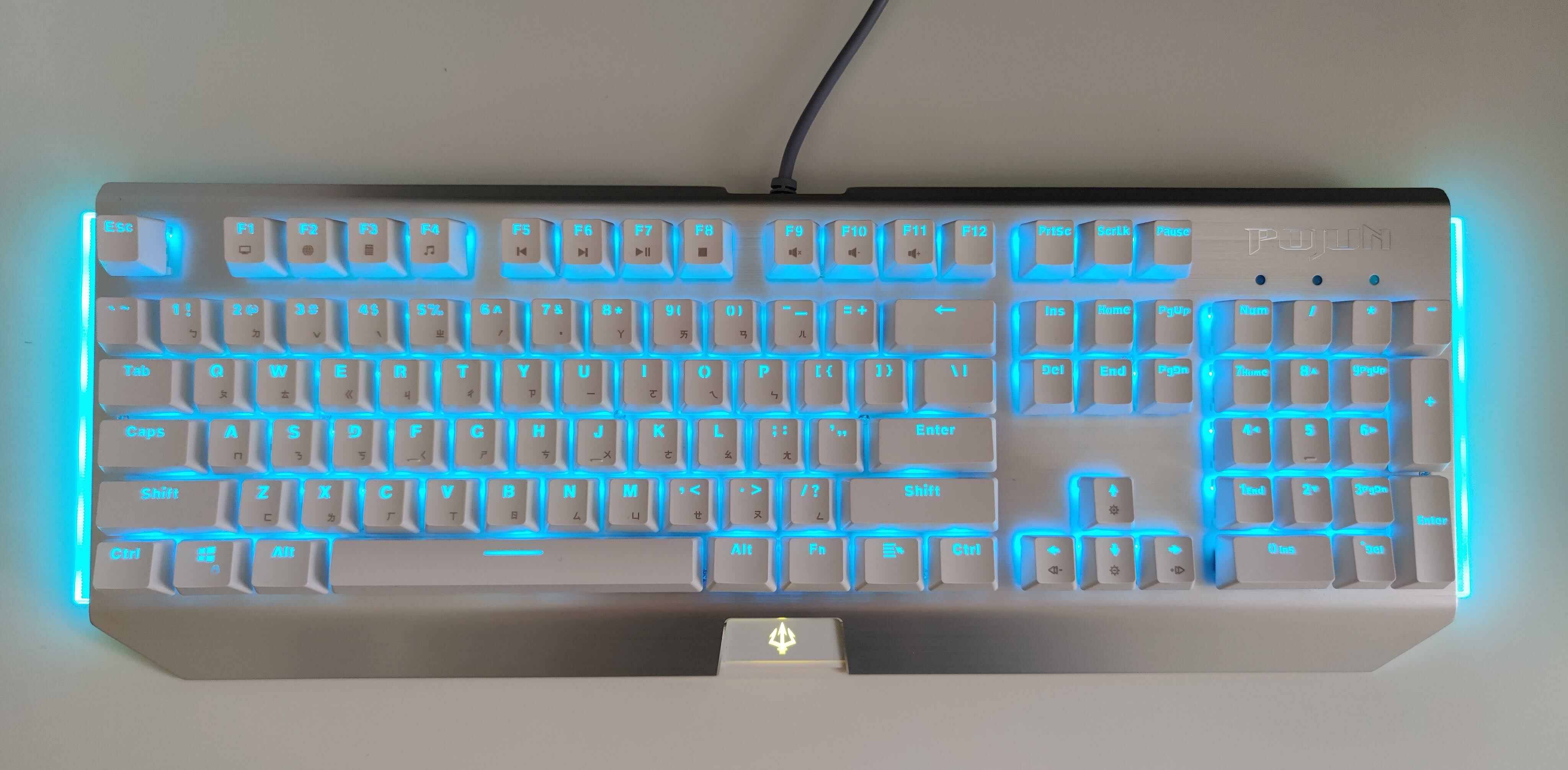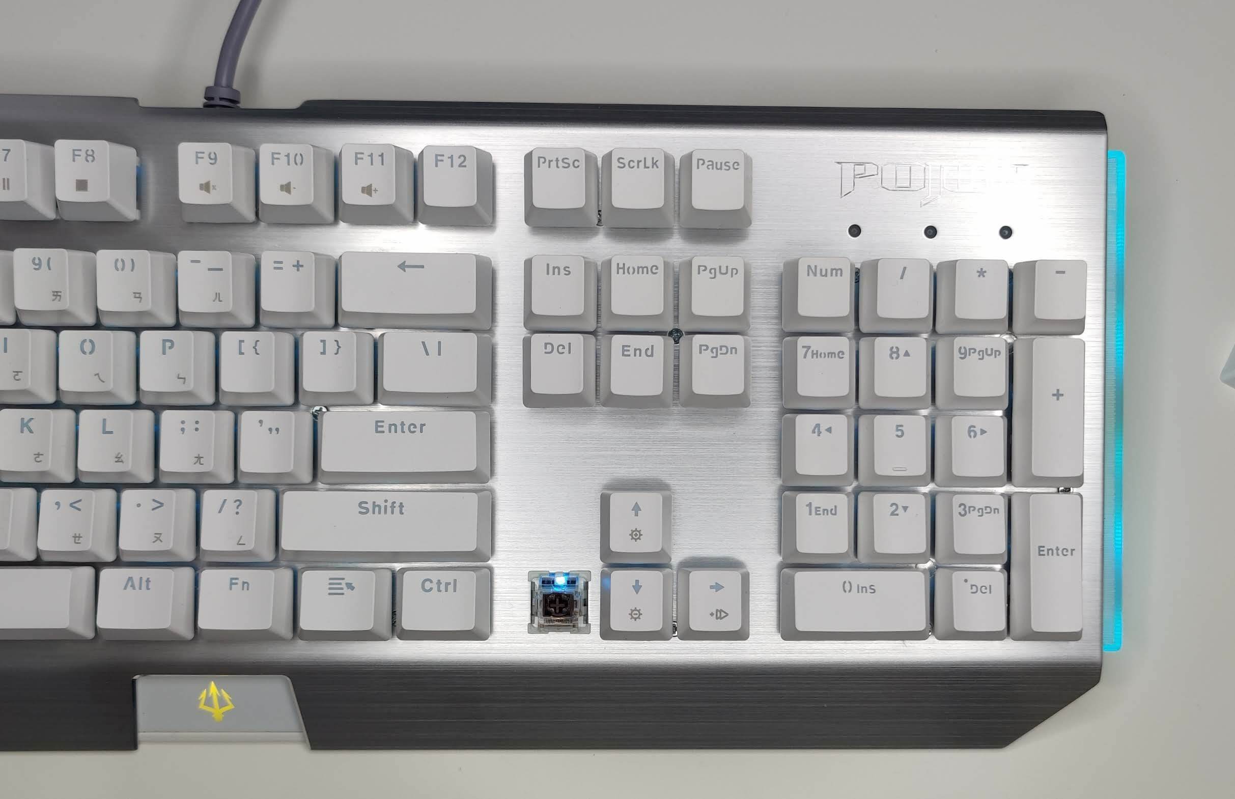 下方的三叉戟顏色是固定黃色,由於黃色是波軍的Logo顏色,所以有些可能會追求鍵盤整體顏色協調性的人,會覺得這塊有點可惜。