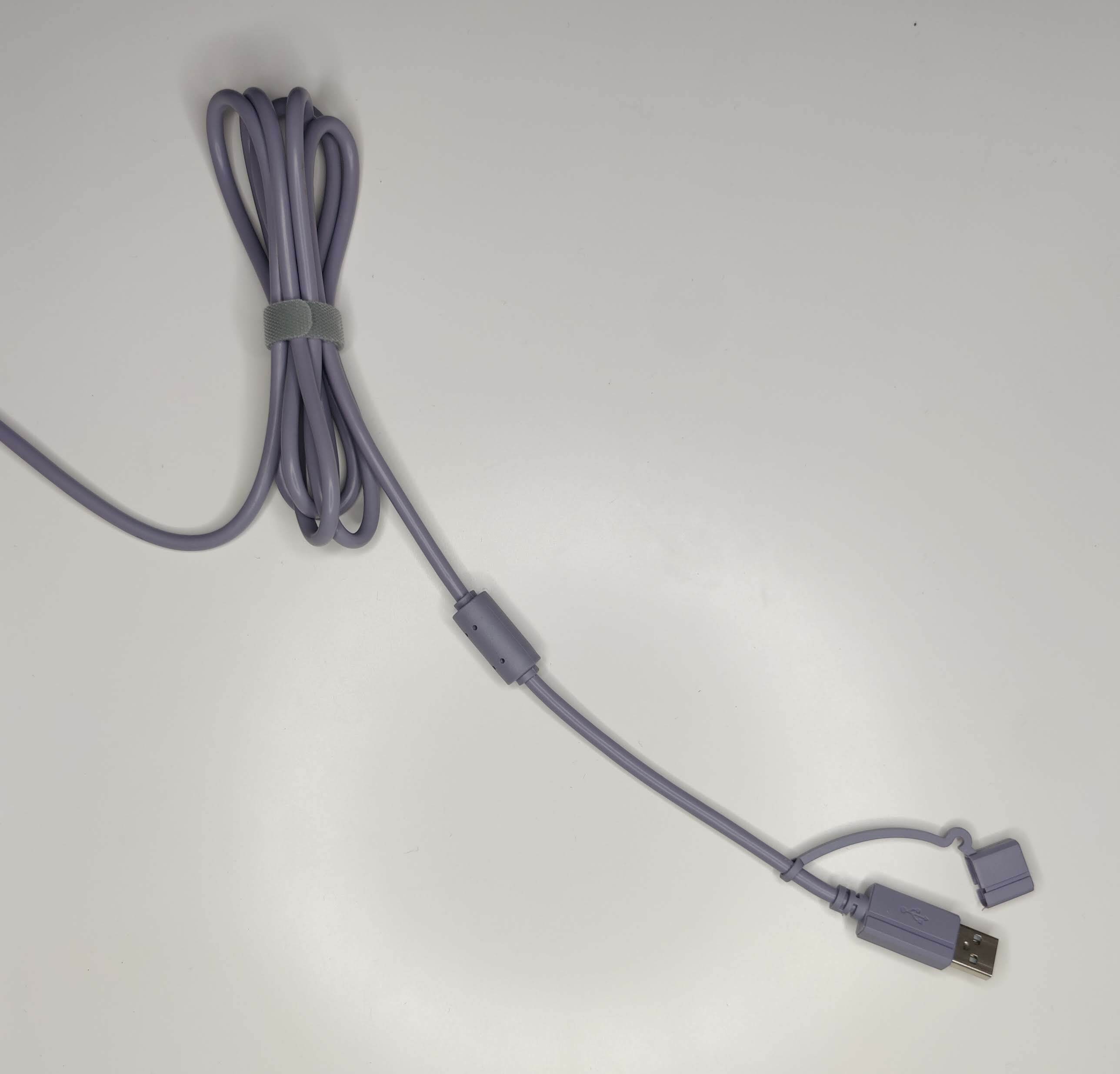 USB端有不脫落的防塵蓋設計以及防干擾設計,捆線所使用的也是可以重複使用的收納環,雖然線材是使用塑料材質,但不會有一般塑膠那樣的生硬或廉價感。