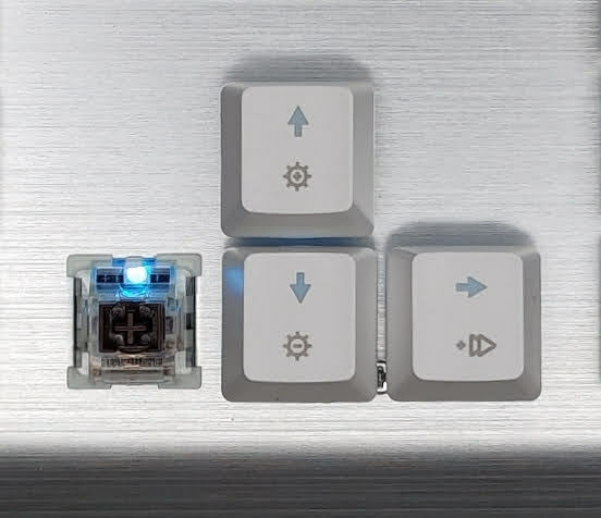 拆下後可以看到鍵盤內的獨立燈珠,而且他們所附贈的拔鍵器蠻好用的,應該說我之前用的拔鍵器常常在拔起來的同時鍵會飛出去,但這個黃色的拔鍵器就剛好將鍵卡在上面,不會有噴飛的狀況。