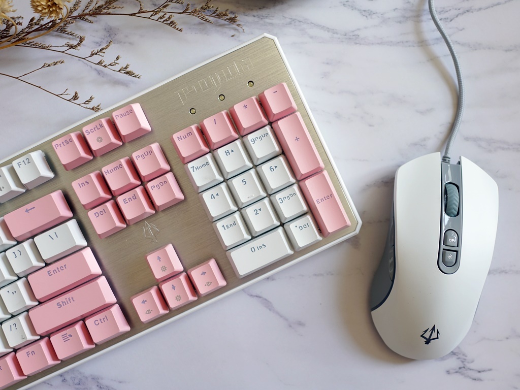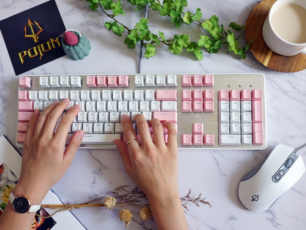 身為長期依賴電腦的文字工作者,扣除睡覺時間、一天使用電腦的時間起碼有八小時以上,可憐的鍵盤、滑鼠就這樣被我們一個個操壞…最近我發現以機械式鍵盤起家的「POJUN 波軍」出了一款新鍵盤,櫻花粉白限定色超美~真的看一眼就會被吸引,是每個女孩都無法抗拒的顏色,這款也是超好用的電競鍵盤,手指敲著鍵盤清脆的聲音超療癒,搭配同色系的滑鼠,讓人工作特別有幹勁!