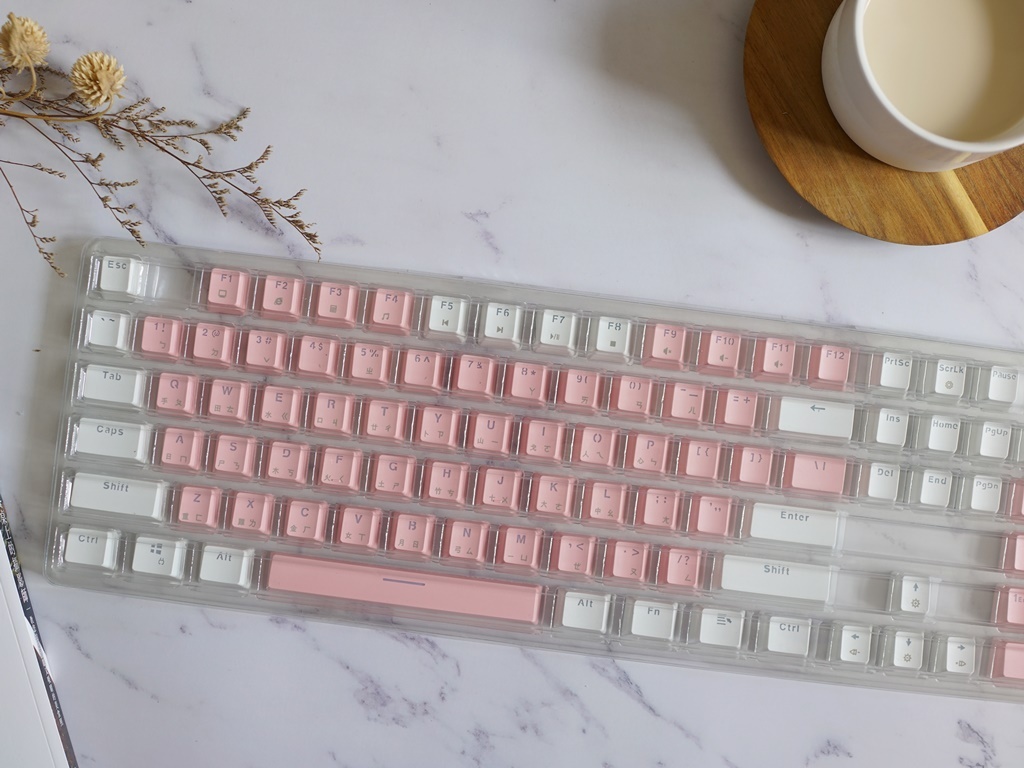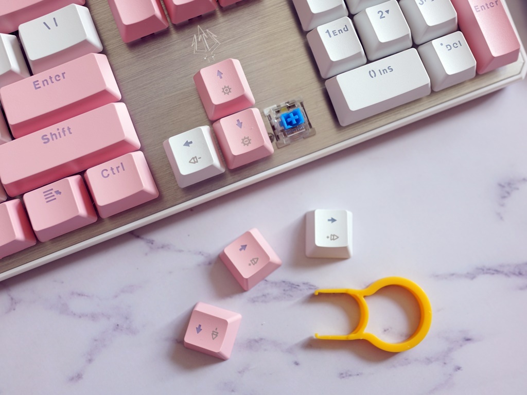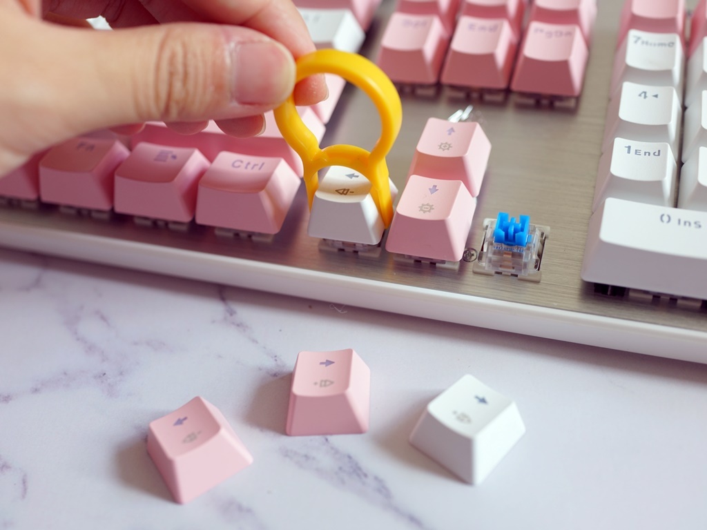 購買的時候有贈送一套相反配色鍵帽,用插拔的方式就能輕鬆更換,可以把鍵盤變成整個白色或粉色,更可以混搭出獨一無二、專屬自己的鍵盤~