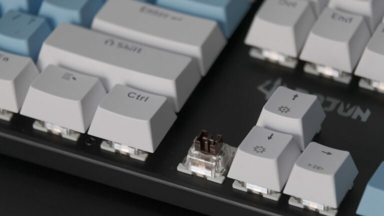 POJUN鍵盤-PJ04就規格上來說,會比較接近PJ02的定位,是一把入手門檻低,且平易近人的機械式鍵盤。軸體的部分依舊採用高特軸(OUTEMU),共有青軸、茶軸及紅軸三種選擇,青軸對我來說太吵,紅軸的鍵盤我也有了,所以這次我選擇的是茶軸。