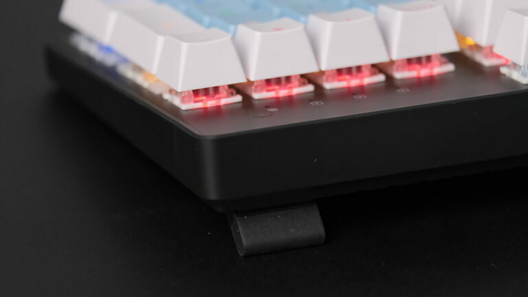 POJUN PJ04的鍵帽設計是做「懸浮設計」,這是RGB鍵盤常見的設計,可以讓燈光更為外顯。因為RGB的關係,在鍵帽的部分也是做「透光設計」,如果是想要自己更換鍵帽的玩家,也要留意一下,如果買到不透光鍵帽,會很可惜。我以前在玩RGB鍵盤時,最喜歡搭配布丁鍵帽,布丁鍵帽就是除了鍵帽上面的字有透光外,整顆鍵帽有約2/3的體積也是可透光的,整個視覺效果就是炫炮,推薦給大家試試看。