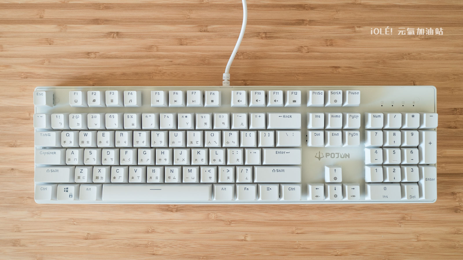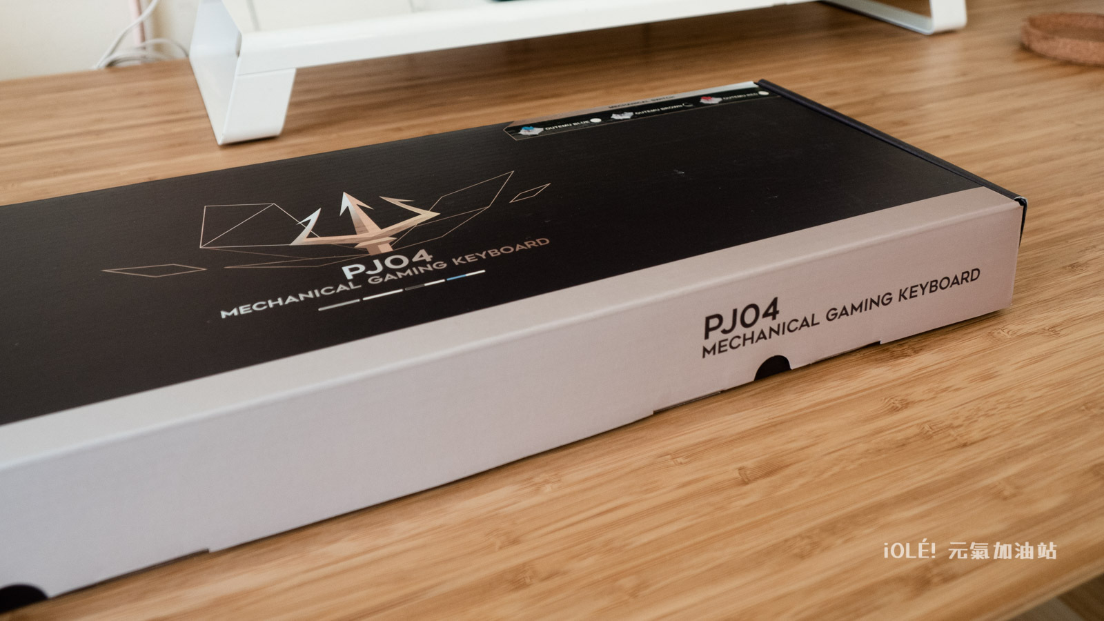 PJ04 機械鍵盤有黑白兩色,鍵盤做工算是還不錯,採標準104鍵配置,上蓋版在官網上看起來像銀色,實品是純淨的白色,不得不說這年頭白色的電競鍵盤愈來愈多了,不再都是黑黑酷酷的一片。