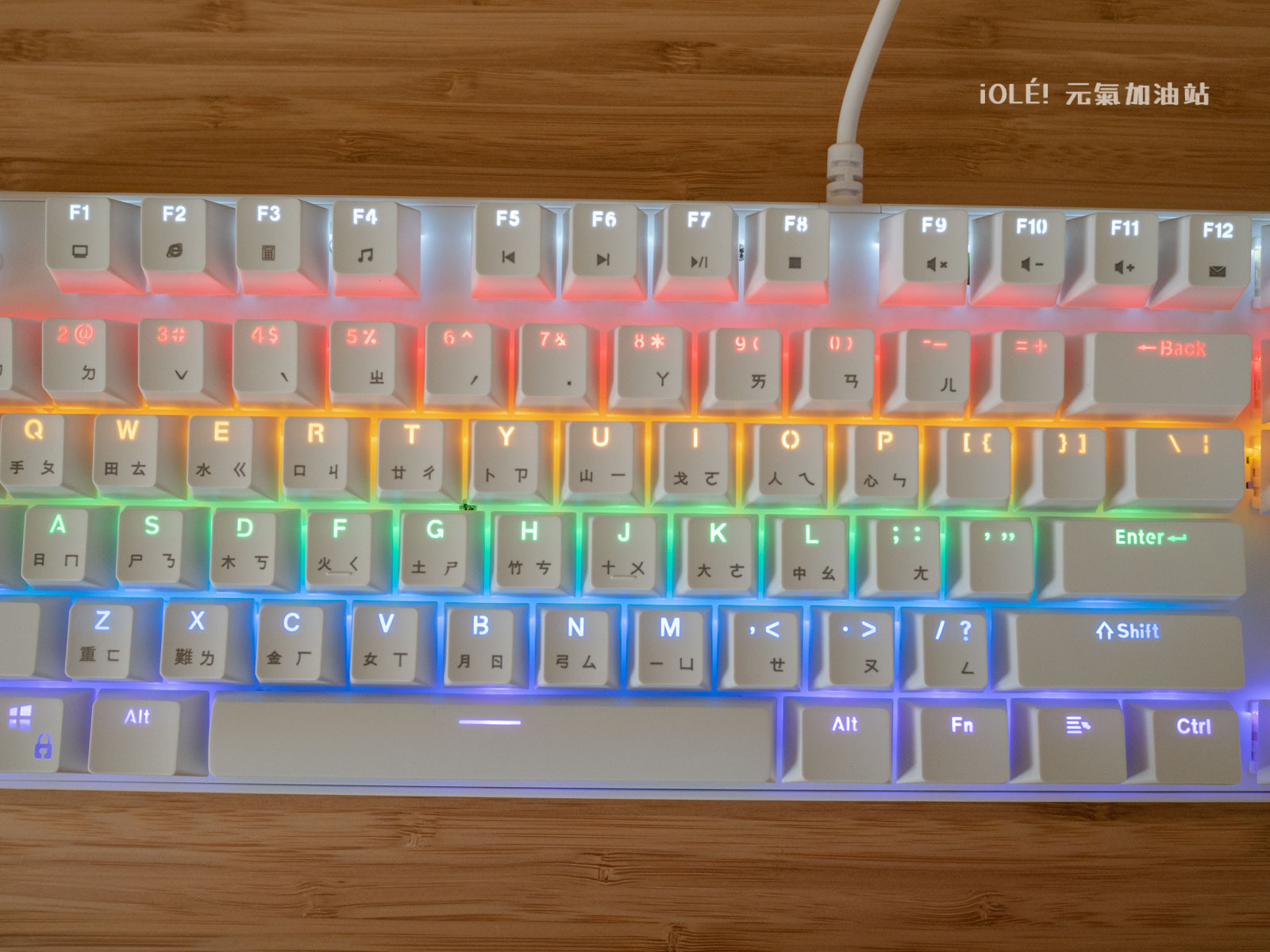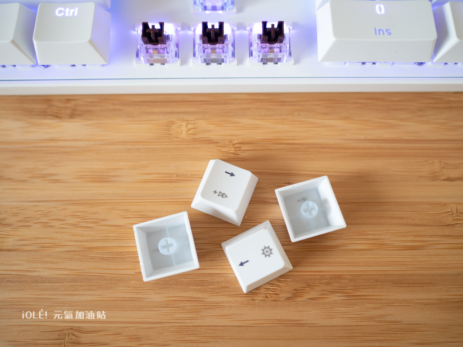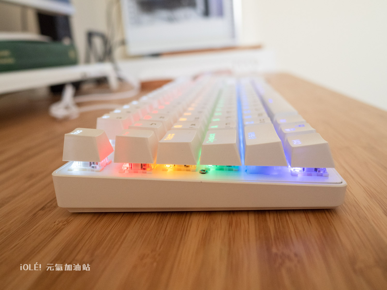 整把純白的鍵盤看起來真的很美,我還是喜歡鍵盤排列有適度留白,這樣比滿滿都是按鍵的那些機械鍵盤看起來更有美感