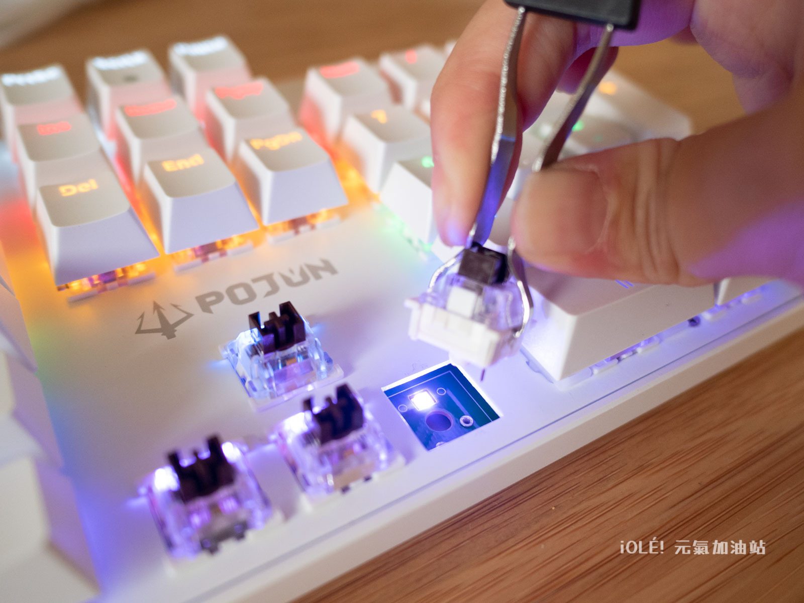 POJUN 鍵盤支援熱插拔,但建議大家上網購買同廠牌 OUTEMU 的軸來做更換,硬裝不相容的軸恐有破壞產品的風險,也會破壞了保固 (POJUN評價不錯,鍵盤都有提供一年保固)。
