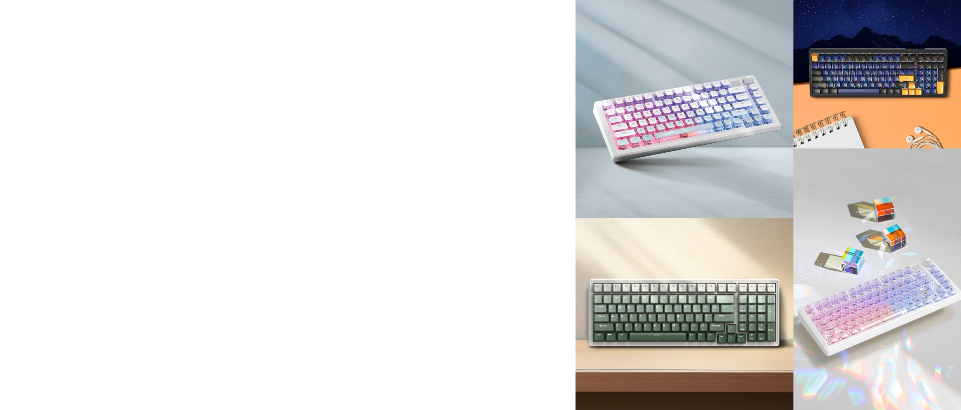 機械鍵盤的按鍵聲音也因內部腔體、填充材料、軸體以及上下殼材質等因素而有所不同,創造出HIFI或無雜音的聲音。外觀和鍵帽的主題色搭配也成為不同系列型號的一部分,增添了視覺上的享受。